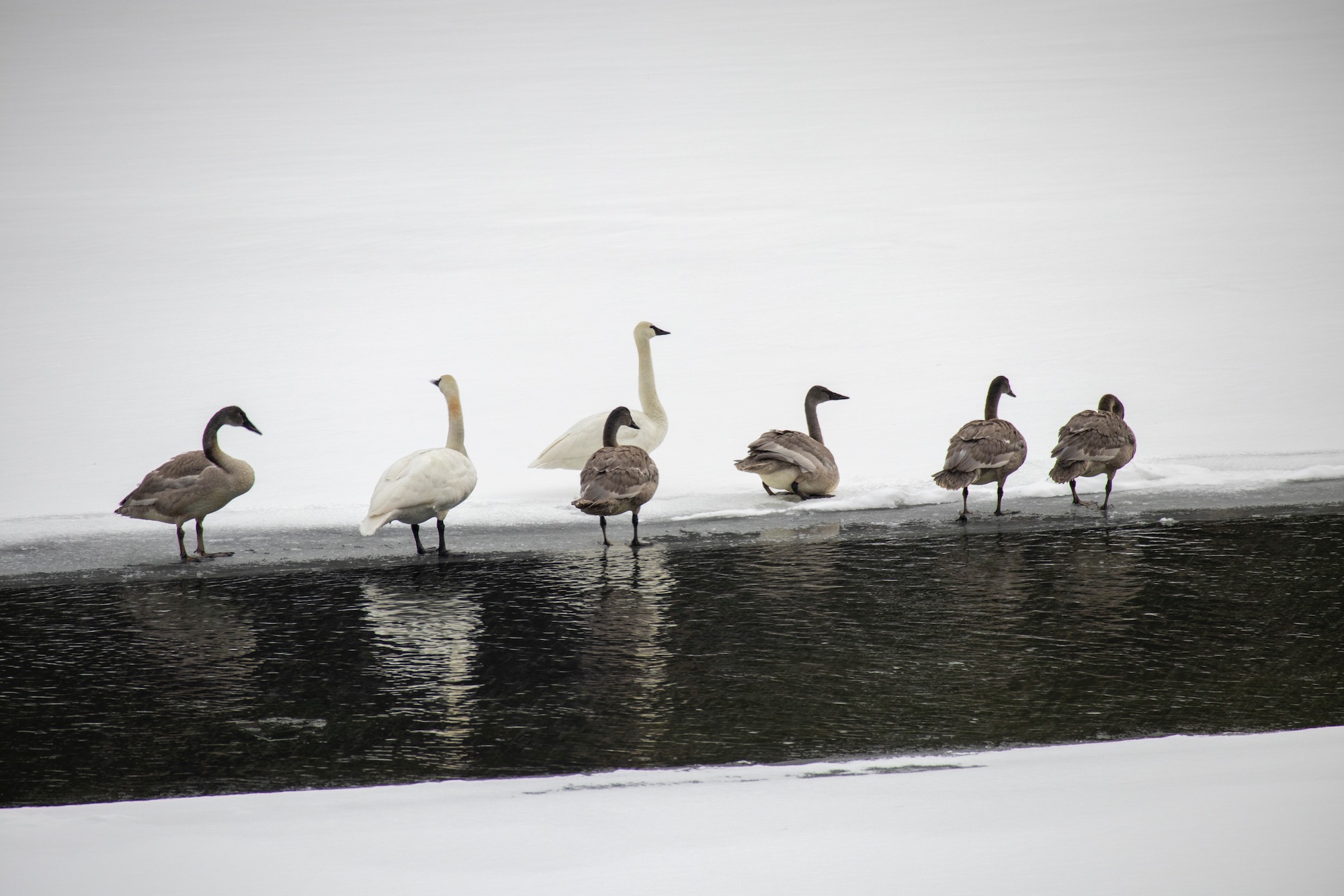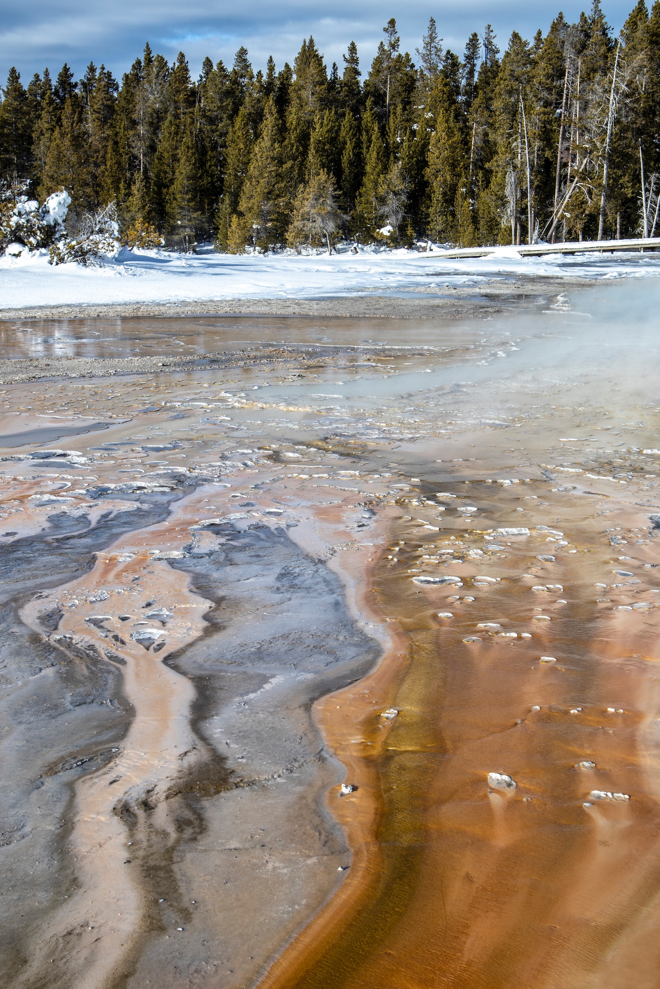 Park access by car is limited to Mammoth Hot Springs/Lamar Valley in the north, and West Yellowstone, Montana in the west. All other access is by large-wheeled snow coach or snowmobile, as roads are snow-covered and groomed, but not plowed. In a departure from our normal style of do-it-ourselves trip planning, we bought a five-night, six-day “Winter Couples Adventure” package through Xanterra Lodges. It included bus transportation from the Bozeman Airport, two nights in Mammoth Hot Springs, three nights in the Old Faithful Snow Lodge, our amazing guide Kristi, snowshoe rental, and all meals. There were also little bonuses like a gift basket in the room (post-hike champagne!) and $50 to spend in the gift shop. Group size is limited to 10. We would definitely recommend it as the best way to see the park in winter.