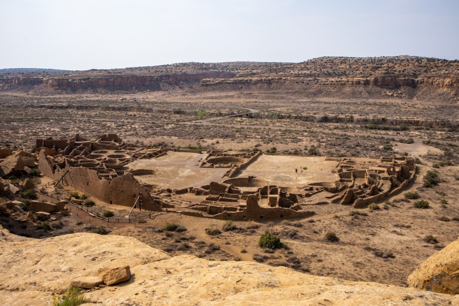 Looking down at Pueblo Bonito at Chaco Culture from the Pueblo Alto trail. This is the largest pueblo in the canyon and used to be 4-5 stories tall.