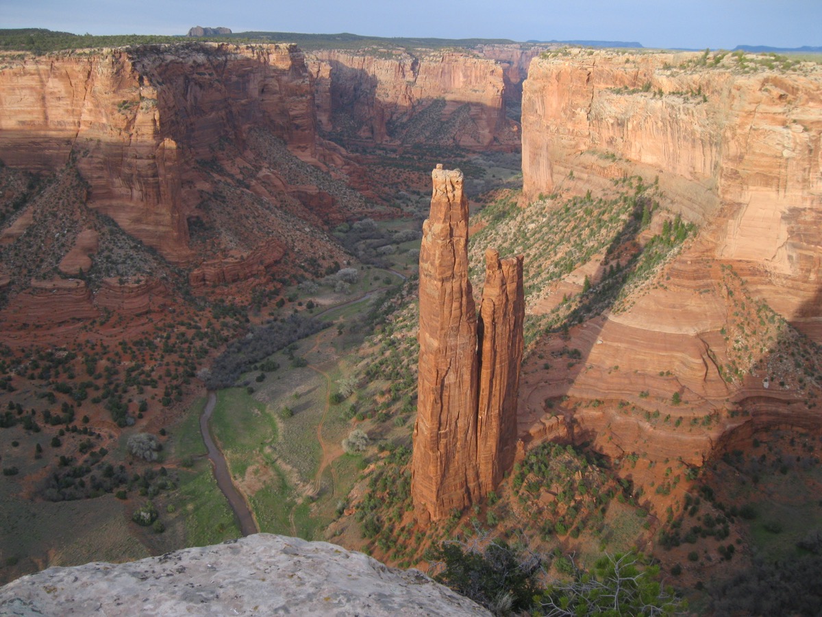 Canyon de Chelly National Monument is located in the Navajo Nation of northeastern Arizona. This is Spider Rock, a 750 foot spire rising from the bottom of the canyon. In Navajo legend, the top is home to the Spider Grandmother, creator of the world.