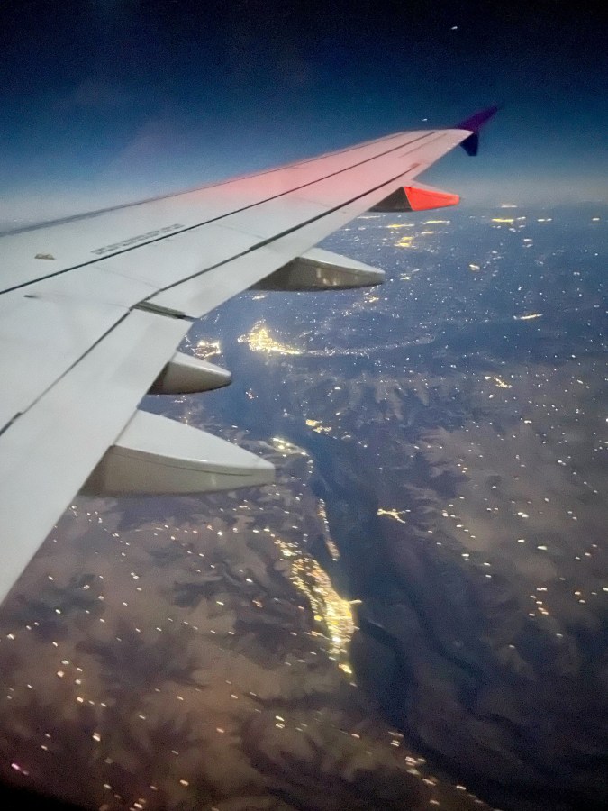 Heading toward Bozeman over the Mississippi River. Guttenberg, Iowa at bottom center.