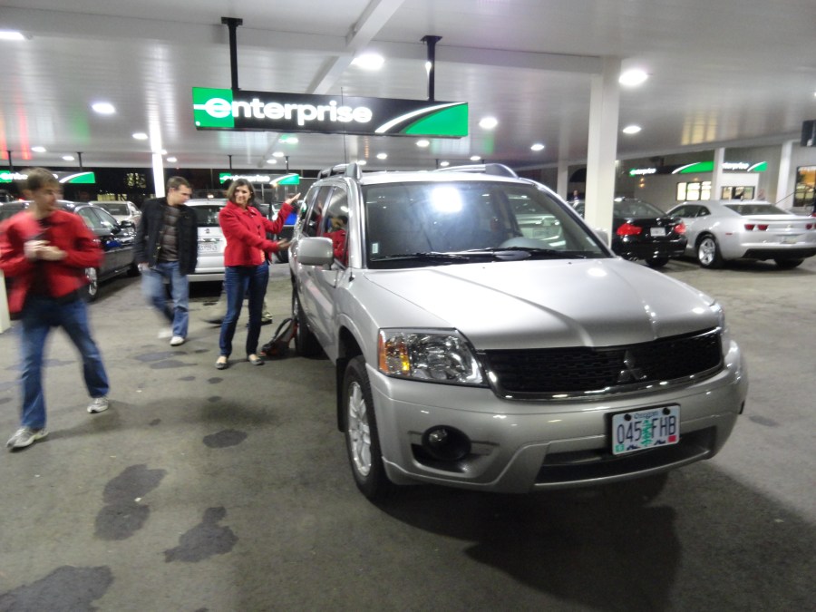 Picking up the Mitsubishi Endeavor at LAX. Only fault: no AUX input for iPods, bummer.