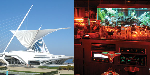 Day and Night: Milwaukee Art Museum spreads its wings. Bryant’s Cocktail Lounge aquarium and vintage hi-fi.