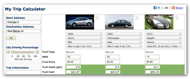Fueleconomy.gov has a great calculator for estimating potential gas costs before you even turn the key. It’s called MyTripCalculator. It allows you to select your start and end points, make and model of car you’re driving, percentage of city versus highway miles and current cost of fuel. It then maps your route and calculates your expected mileage, gallons of fuel you’ll use and cost based on the local price you provide. It’s not an exact science, but it puts the cost of gas in perspective with air travel (check average gas prices across the country here). I’ve input a few of our previous routes (nerd alert: I always keep track of gas mileage), and MyTripCalculator is quite accurate to our real world results. You could even put in a daily commute and estimate weekly gas costs if you are curious. It’s also very interesting to compare two different car models on the same route, a handy car shopping tool.