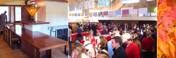 (L) Interior of Frank Lloyd Wright’s Emil Bach house from last year’s Open House event. (R) Nick peruses the pie selection at the 2011 Bucktown Apple Pie Contest.