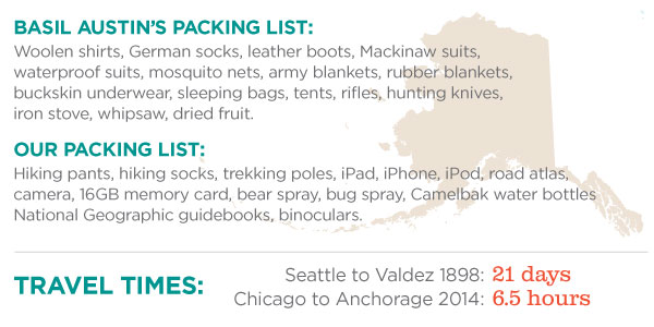 This story has extra special meaning to me as I have several Beatty family ancestors who participated in this very gold rush. Their journey is remarkably similar to that of Basil Austin, leaving from Seattle and arriving in Alaska at the port of Valdez. Austin even mentions their steamship Excelsior arriving at Valdez port. Among their party was one woman, which was extremely rare, “This is sure no place for women or children,” according to Austin. The Beattys wrote letters home to family in Iowa, creating a travel log of their own that I’m fortunate to have copies of. We know for sure they stayed in a placed called Amy’s Landing along the Klutina River through the summer and early fall of 1898. The last letter we have was written in late October 1898 and indicated they intended to stay through the winter, although it seems most likely they came to their senses and headed home soon afterwards, as there is no further record of them in Alaska. By the 1900 census they were all back in the lower 48 (except for poor George, who unfortunately drowned while crossing the Klutina on a raft.) Most fascinatingly, while the groups’ routes differ after crossing the Valdez glacier, it is possible that Austin and the Beattys could have crossed paths or maybe even met at Amy’s Landing that summer. We’ll be near the area where a lot of these stories took place when we visit Copper Center, but because there are few roads in Alaska, much of the land they talk about is still remote, unspoiled and nearly impossible to visit.