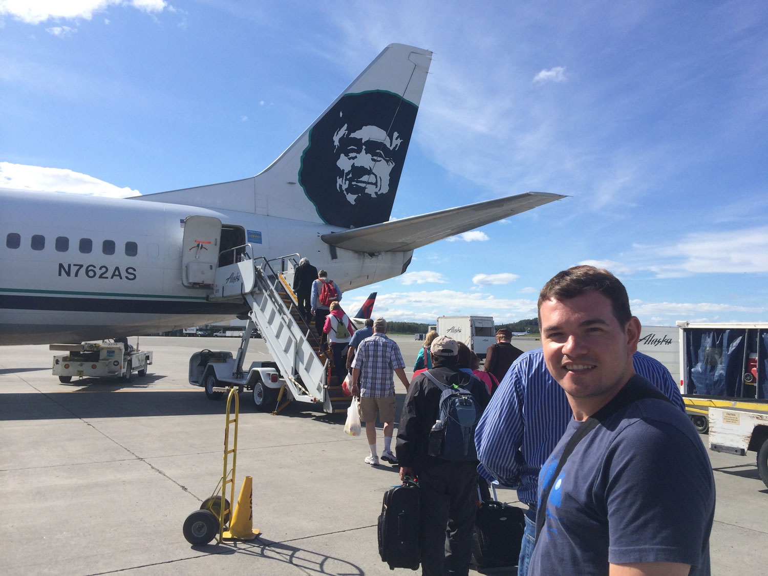 Off to Juneau on board a 737 Combi. The front half is cargo and the back half is passengers, which provides a unique boarding experience.