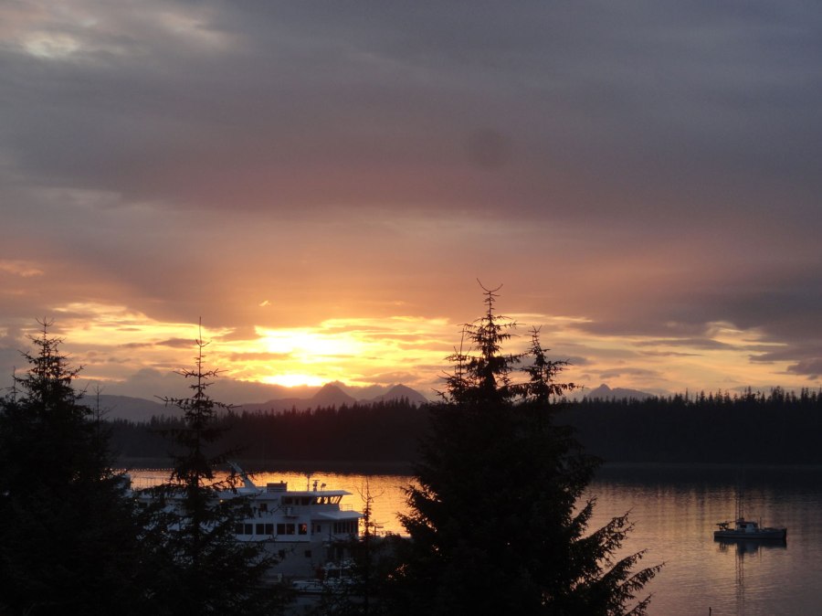 Sunset from the deck at Glacier Bay Lodge.