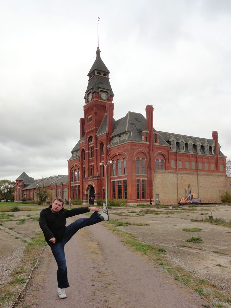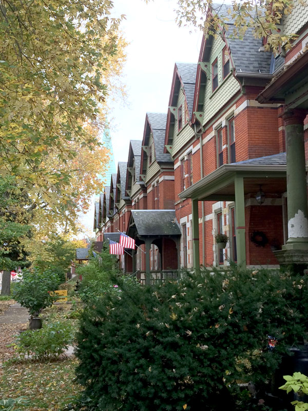 During this year’s annual Open House Chicago event (October 18-19, 2014), we took a trip to the far South Side to visit the Pullman Historic district, site of the first planned company town in the United States. It was envisioned by George Pullman as a place where his rail car company employees could live near the factory. He believed happy employees were loyal, hard-working employees, so he hired architects to turn his idea into reality with beautiful housing and spacious parks. In 1896 Pullman was even voted the “World’s most perfect town” at the Prague International Hygienic Exposition. The dream lasted only a few decades though, with the housing becoming privately owned in the early 20th century and eventually the whole town being incorporated into the expanding city of Chicago. After demolition threats in the 1960s, strong neighborhood preservation efforts have stabilized and improved the neighborhood and helped it achieve landmark status at federal, state and city levels. Today it feels more like a quaint small town than a neighborhood within the country’s 3rd largest city. Major buildings have been restored and the Historic Pullman Foundation operates an on-site visitor center.