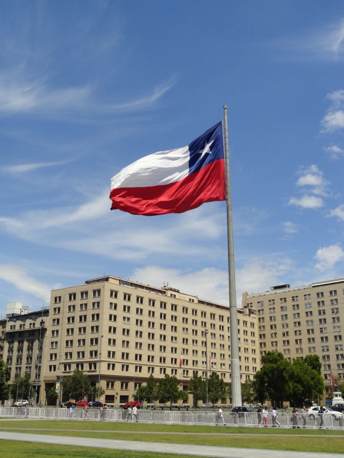 The Chilean flag is a common sight everywhere in the country, this enormous one flies in front of La Moneda.