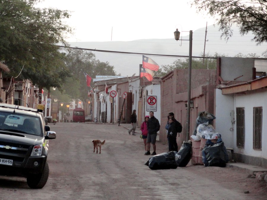 Early morning scene in San Pedro. Many excursions begin early, so in the morning the streets are filled with people waiting for vans to pick them up.