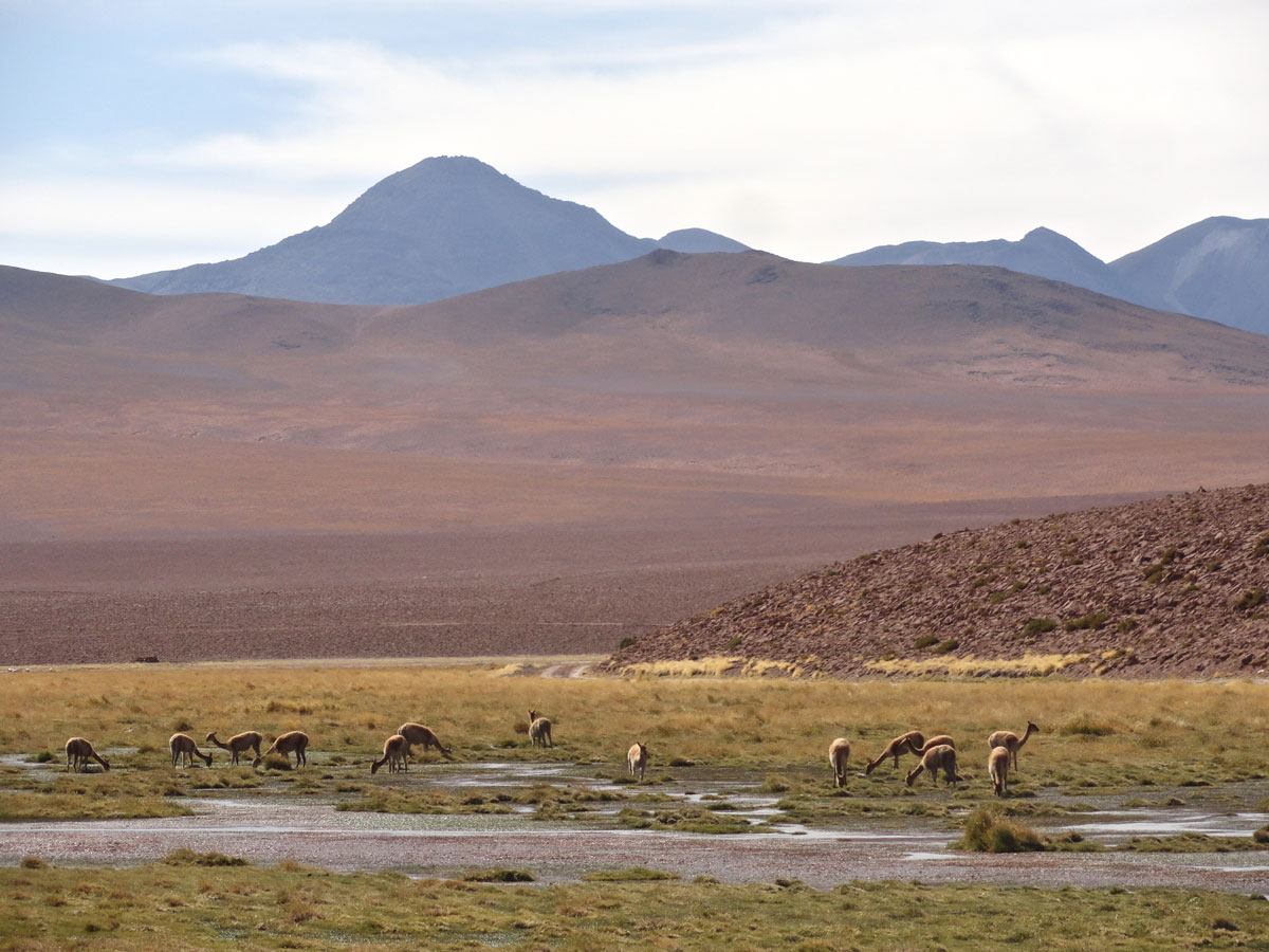 A herd of Vicuñas grazing on some grass just south of El Tatio.