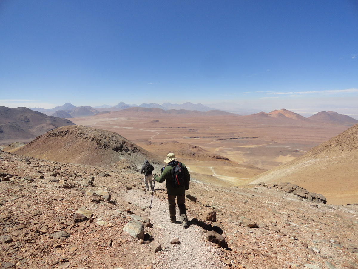 The following day we had pre-booked an excursion to climb a nearby volcano, Cerro Toco. Of the numerous volcanoes in the region, this one is the most accessible to non-professional mountain climbers. We booked through Turismo MiTampi, for a small group tour that included just the two of us, the guide and one other guest. We were picked up at our hotel at 7:00am for the hour-long drive to the mountain. When we were off the main highway, our driver and our guide Juan Pablo set up breakfast at the side of the trail and we ate a simple traditional Chilean breakfast of avocado, bread, cheese, ham and coffee from the tailgate of the Jeep. After a bit more rugged driving we passed a large telescope and arrived at the start of the trail to the summit. For future reference, when you’re higher than the observatory telescopes, you’re in seriously high elevation. The trail started just over 17,000 feet in elevation and climbed to the peak at 18,386 feet. For comparison, the summit of Mt. McKinley, the highest point in North America, is only about 2,000 feet higher and we were viewing that from a comfortable elevation of 3,300 feet last summer. At this extreme elevation there is only 45% of normal oxygen available for breathing and we were repeatedly warned to inform our guide of any ill feelings. Juan Pablo gave us a rundown of the dangers and set the pace for the climb, which is basically slow, smooth 8-inch steps the whole way up. The lack of oxygen makes even this slow pace feel extremely tiring. Every once in a while we stopped and Juan would check our eyes and pinch our fingertips to make sure we weren’t developing severe altitude sickness. Even though the trail is just over a mile in length with 1,000 feet in elevation gain, it took just over two hours to go up. The view from the summit is indescribable, with a 360 degree view of the Atacama, the conical Licancabur volcano, Bolivia and a seemingly endless string of volcanoes and mountain peaks to the south. There were high fives and hugs all around to celebrate our arrival. We spent 20 minutes taking photos and resting before turning back to the bottom. The way down was faster, at about an hour and fifteen minutes, but upon arriving at the Jeep, we found it sitting with its hood open refusing to start. Not the sight you want to see waiting for you. Our guides hitched us a ride down the mountain with another climbing group and in an hour we were back in the (relatively) oxygen-rich air of San Pedro. We spent the rest of the day doing lower-key activities like eating, drinking water, and browsing the artisanal markets. We also visited the Museo Arqueológico RP Gustavo Le Paige, which tells a detailed story of the history and culture of the Atacama Desert region and its people through a huge collection of artifacts. We highly recommend a visit.
