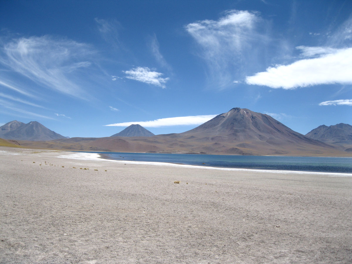 Our first was a half day trip to see the Salar de Atacama and Lagunas Altiplanicas. The Salar de Atacama is the third largest salt flat in the world, with white deposits of salt and minerals stretching out in a flat, 1,200 square mile expanse. Also in the Salar is a section of the national Flamingo reserve, where you can see the pink birds in their natural habitat. Lagunas Altiplanicas is a duo of high altitude (13,500ft) alpine lakes that reflect the brilliant sky and mountains. The road there was extremely rough, but the guides are used to it and just take it in stride while everyone bounces around. The tour was a great introduction to the region. When we returned to town in mid-afternoon we realized we had plenty of time to have lunch and then do another tour. A guide company found us last-minute seats and we headed off to the Valle de la Luna and Valle de la Muerte. The adjacent valleys contain wind and water eroded formations that resemble otherworldly landscapes. They were originally intended to be named after the Moon (Luna) and Mars (Marte) but a misspelling back in the day meant that Mars got renamed for death (Muerte), oops. Our guide began by taking us to some great viewpoints for photographs, and then drove us into the heart of the Valle de la Luna, where we climbed through some narrow salt caves and viewed more crazy rock formations. Excursions to this area generally leave San Pedro in late afternoon so that the end of the tour coincides with sunset in the valley. The last stop was at Great Sand Dune, where the van parked at the bottom and we all climbed up a trail and sat along a ridge with a fantastic view as the sun dipped below the horizon.