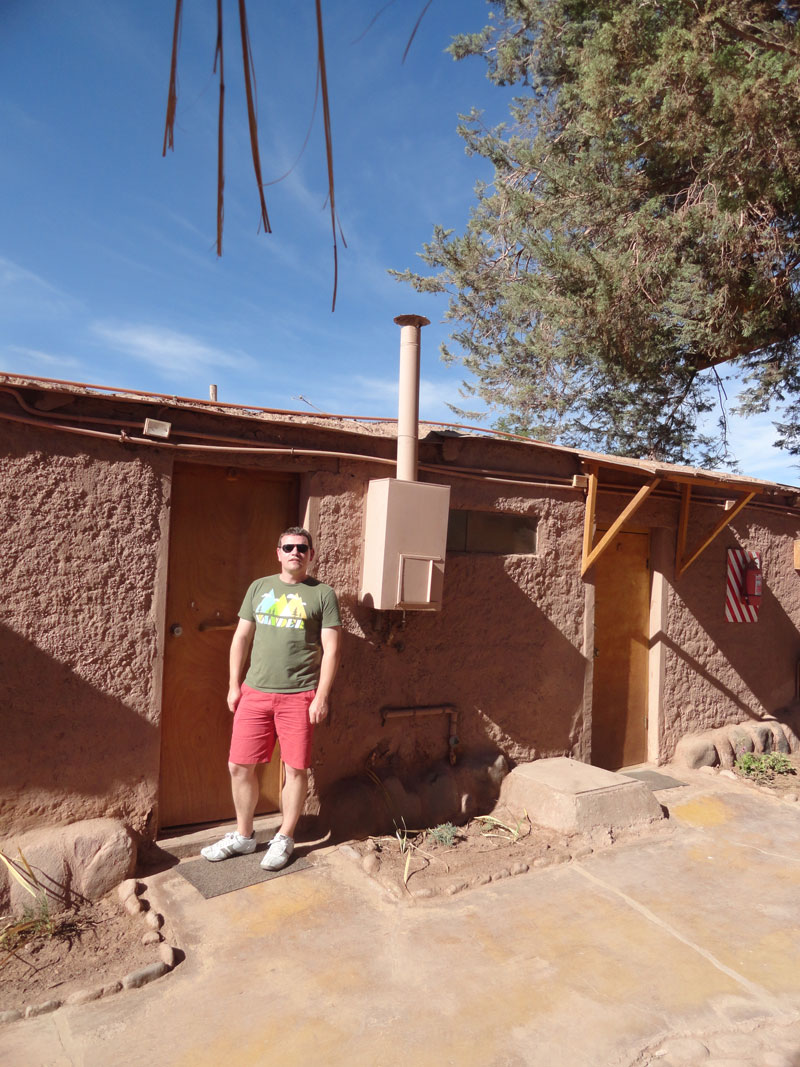 For the final segment of our South American adventure, we flew to the far Northern reaches of Chile to visit the Atacama Desert and its namesake town, San Pedro de Atacama. Getting there requires a 2-hour flight from Santiago to Calama, and then a shuttle bus for the hour and a half drive from Calama to San Pedro. The Calama airport is a single runway plopped in the middle of the desert, upon descent it appears you’re about to land on the moon. The shuttle service proved to be a bit leisurely in their departure time, but once we got going it was a fine drive to San Pedro and we were dropped off at the door of our hotel. Actually, everyone gets dropped off at the door of their hotel, so if you’re not one of the first few stops, you’re in for a long ride zigzagging all over town, kind of annoying since you can walk anywhere in town in 10 minutes. We selected Hotel Takha Takha (it’s what they call foosball) for our three night stay. The rooms are basic and a bit rugged with low ceilings but there is a nice pool area (although unheated) and free wifi near the office. Its central location was perfect as well.
