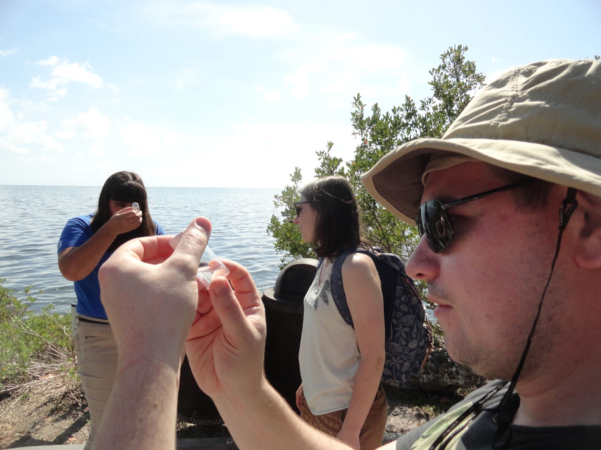 Checking out preserved sea creatures on the Jetty Walk tour at Biscayne National Park.