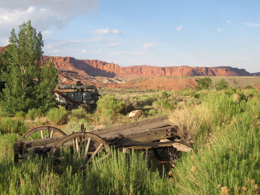 Picturesque old wagons were strategically placed around the Rim Rock Inn near Torrey.