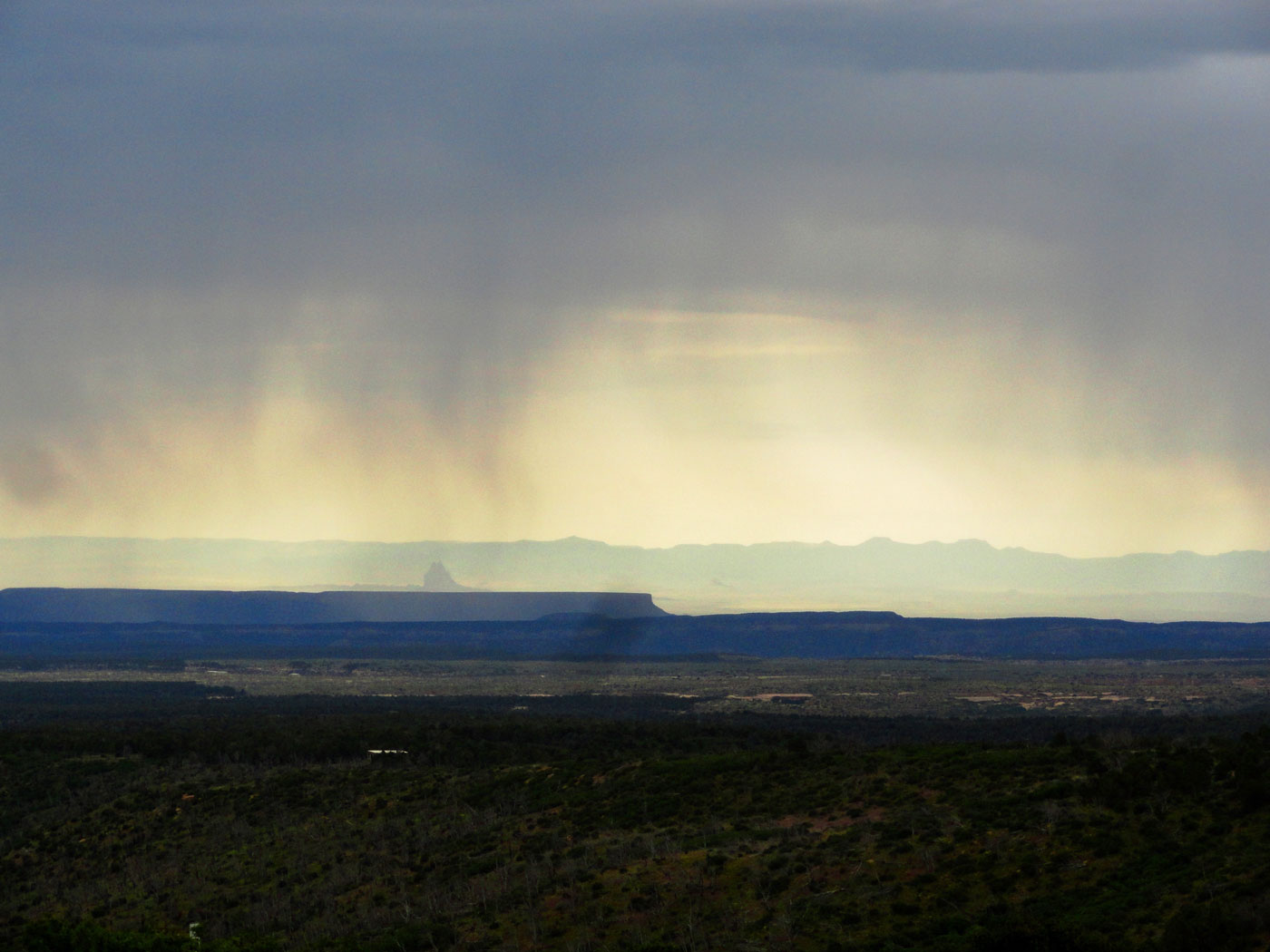Morning showers viewed from our room at the Far View Lodge. That pointy rock in the distance is Shiprock, nearly 45 miles away in New Mexico.