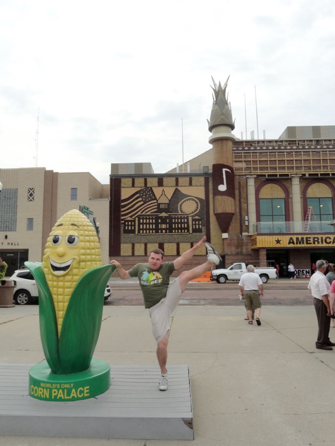 Mitchell Corn Palace in South Dakota. Sadly, the domes were sitting on the sidewalk awaiting installation, but the corn was being nailed on the walls as we watched.