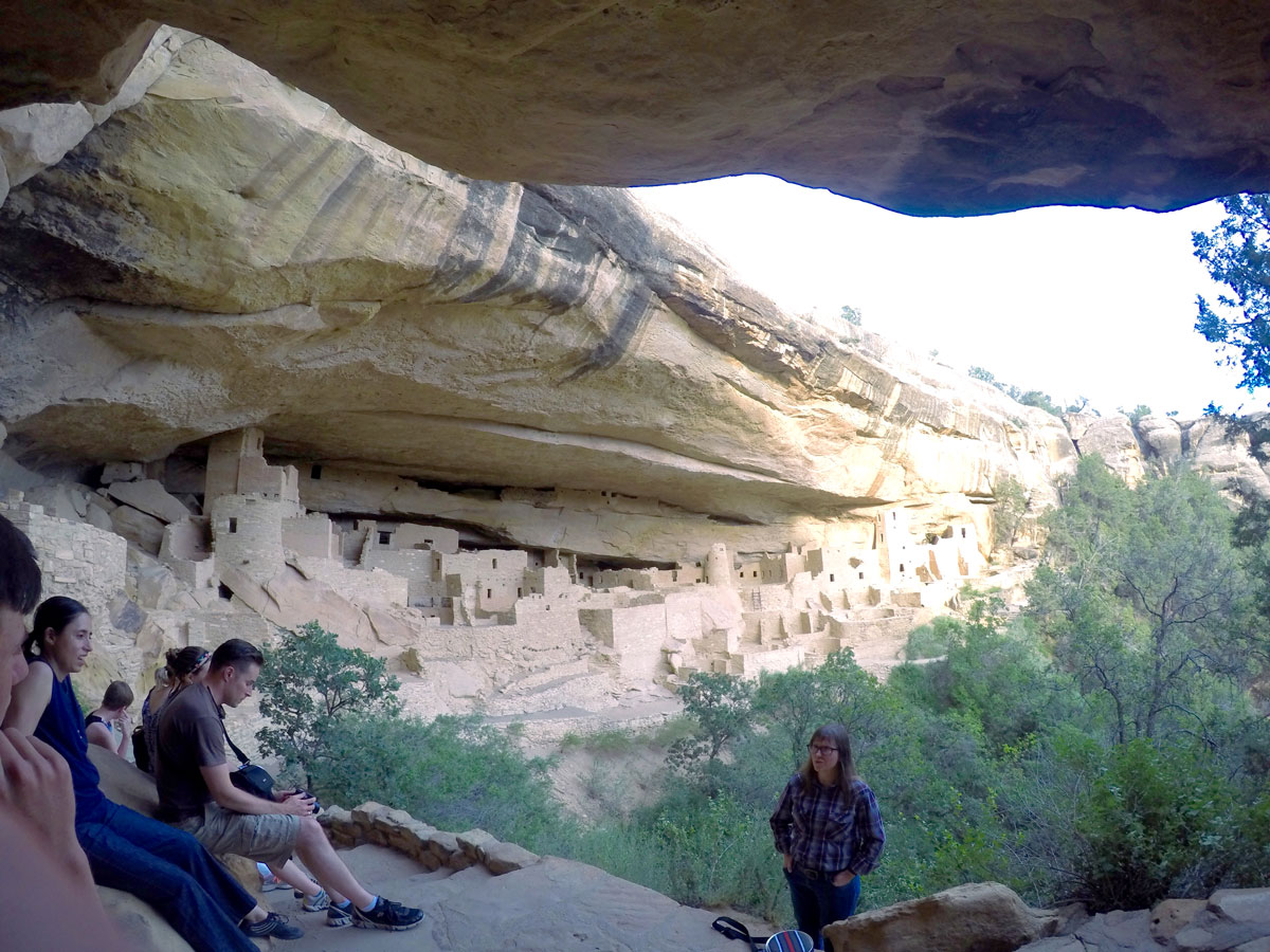 As part of the twilight tour experience, each guide plays a character to help bring the stories to life. Ranger Marie assumed the identity of real 1950s-60s Mesa Verde archaeologist Jean Pinkley for most of the tour. We learned about the ways of life of the Ancestral Puebloan and the discoveries of the cliff dwellings through the eyes of Jean. After touring the site and seeing ceremonial kivas and an ancient painting, we left the site by climbing up narrow ladders between boulders, giving us an extra appreciation for the skill it took to live in cliff dwellings.