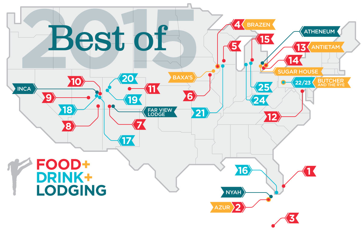 Dining and drinking are always top-of-mind while we travel, so it’s no surprise many of our road trip memories revolve around tables and bar stools. When something especially good catches our attention, we write it down. Now at the end of the year, we look back and remember which ones still stand out in our minds. Our 2015 selections cover ground from Utah to Baltimore, all the way down to the tip of Florida and even into the Caribbean. 15 dishes, 10 beverages and our favorite overall meals, bars and hotels.