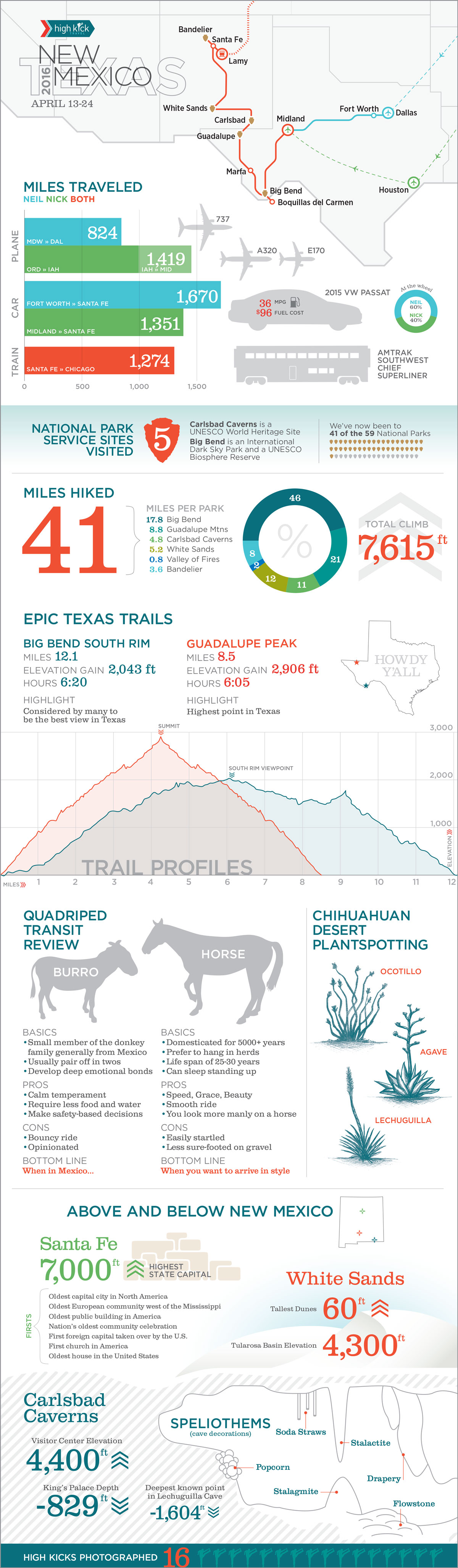 Our first trip of 2016 took us to two states, three national parks, two national monuments and even a brief lunch stop in Mexico. Here’s how it all breaks down by the numbers. Click the image for larger view.