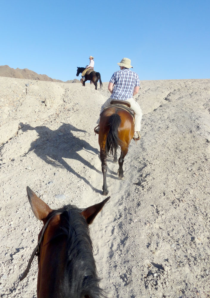 In keeping with the theme of four legged transportation that day, we booked a two-hour sunset horseback ride at Big Bend Stables in Study Butte, near the west park entrance. It’s about an hour drive from Rio Grande Village to get all the way across, so we booked our third night’s lodging at the Big Bend Resort for the convenience of exploring that side of the park. Study Butte/Terlingua has more amenities, like lodging and dining, but none of the charm and backwoods feel of Chisos Basin. The sunset ride begins at 6:30, and they recommend arriving a half hour early to get everything settled so you can be on the horse and ready to go. I was matched up with Indio and Nick was paired with Mannie. After a quick refresher course on horse steering controls, we were ready to set out into the desert with our excellent guide, Kellie, leading the way. With just one other couple on our ride, it was a laid back time, allowing us to take in the scenery and get lots of great photos. The route passes an abandoned mine from the area’s mercury mining days and follows dry arroyos before climbing up to a windy mesa filled with Ocotillo plants. It’s a more fun route than we’ve experienced on other trail rides, with some steep sections and rocky paths down from the mesa. Kellie even made a photo stop so we could have our picture taken on the horses. We loved that, because on a ride a few years ago we weren’t even allowed to take photos (we secretly did), and part of the fun is showing everyone you know that you were on a horse. As we made our way back to the stables, we observed both of west Texas’ famous sunsets, the first one being the orange alpenglow on the mountains to the east and the second being the traditional blazing sky after the sun dips below the horizon in the west. After the ride, we walked bow-legged into the Starlight Theater in the “Ghost Town” area of Terlingua for dinner. It’s probably the best known restaurant in the area, serving great Tex Mex food in an old theater building with a full schedule of live music.