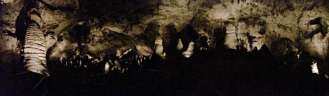 After our stay in Big Bend, we turned toward Texas’ other National Park, Guadalupe Mountains. This park is located about four hours north, just below the border with New Mexico. It contains the highest mountain range in Texas, including the highest point in the state. The peaks are the remnants of an enormous reef that formed at the edges of an inland sea during the Permian period about 250 million years ago. Sediments then covered the reef for ages, before uplift and erosion re-exposed the rock beginning 65 million years ago. The National Park covers the portion of the Guadalupes in Texas, but the range extends to the north into New Mexico, where an entirely different world awaits. Carlsbad Caverns National Park lies within the same geologic formation just 30 miles north in New Mexico. Here, petroleum deposits deep underground seeped up and reacted with groundwater to form sulfuric acid that dissolved enormous caverns in the limestone. Then, mineral-rich water filtering from above slowly built dazzling formations. In 1898, local ranch hand Jim White thought he saw smoke rising from the land and went to investigate. Approaching, he discovered millions of bats exiting a huge hole in the ground. He explored the cave by lantern light, named many of the rooms and brought the cave to the attention of the public. It became a National Monument 25 years later in 1923. Like Big Bend, this is another remote region, with no services near Guadalupe Mountains and only a few options near the entrance to Carlsbad Caverns, but their proximity makes for a convenient double park visit.
