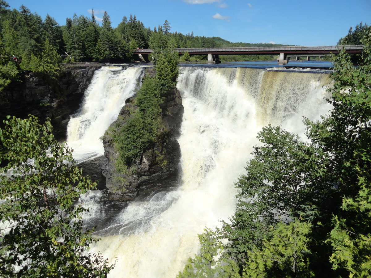 park is the 120-foot tall High Falls, one of the major obstacles the voyageurs were avoiding on the Grand Portage Trail. A half-mile paved trail and boardwalk leads to two viewpoints of the tumbling falls and the Canadian side of the canyon. Back in the car, we crossed the Pigeon River and got our passports ready for the customs agent. He gave us the standard questions about where we were going and how long we’d be in the country, and we were welcomed with typical Canadian friendliness. The only real adjustment we had to make was squinting at the teeny kilometer numbers on our American speedometer. Seriously, why can’t the U.S. just join the modern world and use the Metric system already?