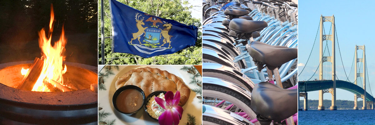 We usually allow ourselves one tourist trap per trip, and this fit the bill. Interestingly, the historic island in Lake Huron was designated the second National Park after Yellowstone, but in 1895 it was decommissioned and returned to the control of Michigan, which now operates part of the island as a state park. Each day, thousands of tourists pile into ferry boats that shuttle them to the village on the island’s southern shore. Upon disembarking, they’re immediately herded onto a Main Street lined with restaurants, ice cream & fudge parlors, cheap t-shirt stores and bike rental shops. Crowds of people mill around the sidewalks while bikes and horse drawn carriages clog the street. The whole island is car-free, which is its most unique quality. We found a good lunch at Millie’s on Main and then rented bikes to escape the circus. An 8-mile loop trail circumnavigates the island and allows somewhat of an escape from the chaos. We also rode our bikes to Fort Holmes (on the island’s highest point) and Arch Rock before eating some ice cream and ferrying back to the mainland. There are some lovely views, but it wasn’t enough to move Mackinac Island out of our tourist trap column. After leaving the dock at St. Ignace, we continued south by car to the lower peninsula by crossing the spectacular 5-mile long Mackinac Bridge, an attraction in its own right if you’re into nerdy things like that (we are).