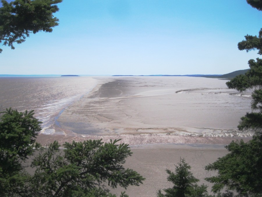 The mud flats to the right are covered and uncovered by water twice a day, leading to rich biodiversity.
