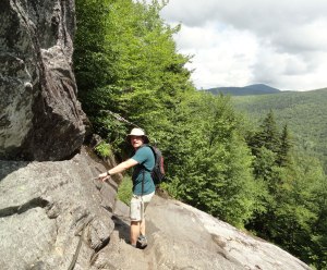 One of the highlights of any vacation for us is hiking, and this region didn’t disappoint. There are trails of all lengths and for all abilities nearby. For the first hike of the trip, we chose a little warmup route to Bucks and Lapham Ledges just east of Bethel along highway 26. Mostly gentle grades with just a couple of steeper sections led us first to Bucks Ledge and then a spur trail to the south led to Lapham Ledge. Both feature rock outcrops with beautiful views of the surrounding mountains and lakes. At 3.5 miles it was a good way to prepare for the longer hikes in our future.