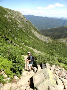 By far our most serious hike in the Bethel region was here at Mt. Washington. We parked our car at Pinkham Notch and hitched a ride to the top with others in our group since we planned to hike down via the Tuckerman Ravine Trail. Many miles of hiking trails crisscross the slopes of Mt. Washington, so there’s no shortage of options. Tuckerman Ravine is a convenient option for a day hike since both ends are easily accessible. The trail starts right from the parking lot at the summit and crosses a boulder field for about the first half mile. Cairns mark the way across large, craggy rocks and down a steep decline. This portion was fairly crowded because lots of people hike down just a short distance and then climb back to the top. By the time we got to Tuckerman Crossover, we had lost most of the crowd and were beginning to meet people who had started at the base earlier in the day. Seeing their expressions reaffirmed our decision to only hike down and not up.