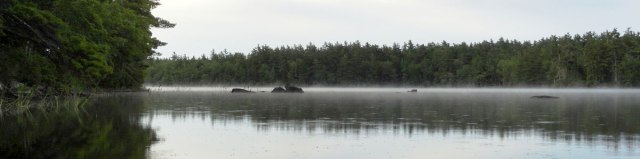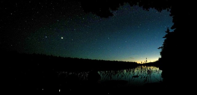 With the loss of the last bit of sunlight, we retreated to the glow of our fire. The utter silence became apparent and we started to notice every slight rustle of leaves around us, convinced that it was an animal paying a visit. At one point Nick caused brief panic by saying “What the HELL was that?! Something just walked by!!” I responded by shining my phone flashlight in the general direction and aggressively throwing a wood chip into the trees. It was probably a tiny squirrel moving on the ground … clearly we were not yet at one with nature. Throughout the night, various crazy noises kept us from achieving deep sleep. Loons are the major culprit here, as their vocal stylings can result in sounds not at all associated with birds. One was wailing an intermittent lonely wolfish cry throughout the night. Then at 3:30 am, two loons decided to have a loud conversation across the lake that sounded like monkeys screeching at each other. Our assessment is that loons are