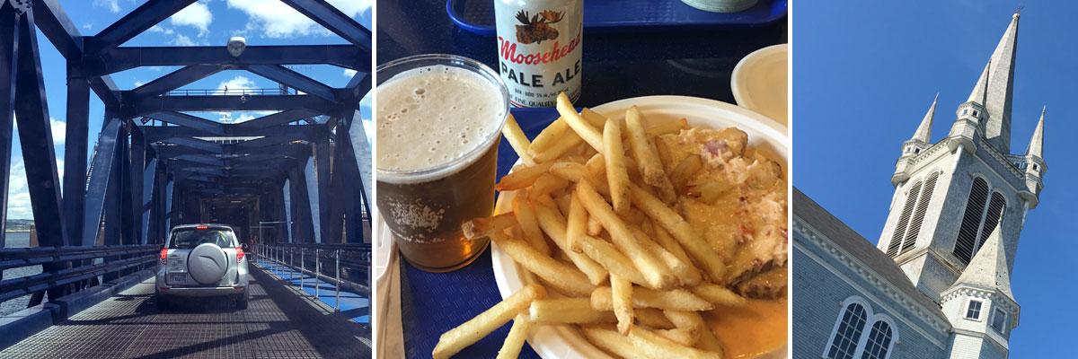 As we drove across the Midwest on the first day of the trip, Nick received a call from Bay Ferries in Nova Scotia. They were informing us that due to maintenance requirements, the ferry we had booked from Portland, Maine to Yarmouth, Nova Scotia on July 22nd was cancelled. Departing Maine a day earlier or later than planned would have negatively impacted our plans and cost us an extra night of lodging on either end. This briefly threw our plans into question, but luckily they gave us 10 days notice so we were able to come up with alternate arrangements. After some schedule searching we found availability on another of their routes that connects St. John, New Brunswick with Digby, Nova Scotia. The only problem is that our planned 90-minute drive to Portland followed by a relaxing 7-hour boat ride turned into a 6:00am departure from Bethel plus a long 5-hour drive and a shorter 2-hour ferry crossing. We were also transporting Nick’s parents to Nova Scotia, so the trunk was full and luggage was stacked to the ceiling in the center back seat. Not ideal, but we made it work. (They were getting their own car in Nova Scotia and touring the province at their own pace, so the crowding was only temporary.) We visited our first Tim Hortons franchise in Bangor, Maine before we even touched Canadian soil, and headed through rolling forests toward the crossing at Calais/Saint Stephen. The Canadian border agent was slightly confused by the combination of passport nationalities and last names in the car, eventually saying “Wait … just tell me how you’re all related.”