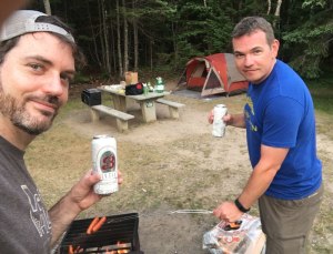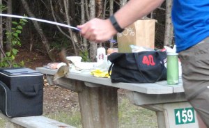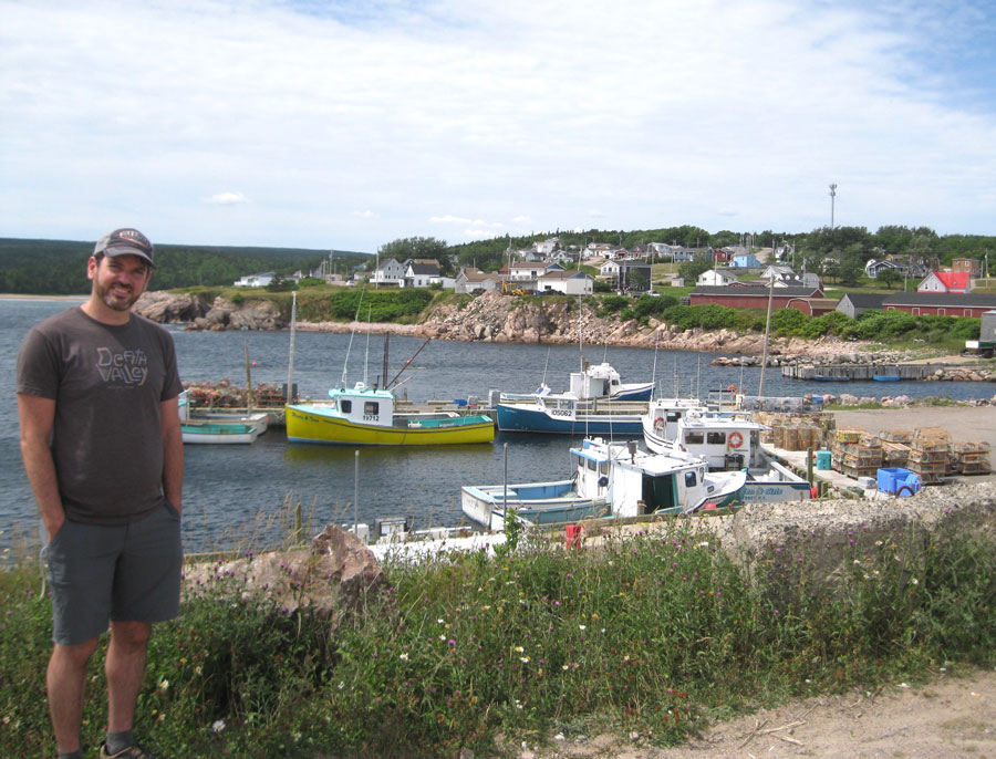 After returning to the car we stopped by the local NSLC (Nova Scotia Liquor Corporation) store and Ingonish Freshmart to stock up the food and beverage department for our evening of camping. The night’s menu would consist of cheese-filled brats, pasta salad and potato salad with cookies for dessert and Breton Brewing beer selections. The Broad Cove campground was a slight backtrack along the Cabot Trail. We checked in and purchased firewood at the entrance station and then proceeded to spacious Site 159 to set up camp. Soon the fire was raging and the beer was flowing. We sat near the fire box to roast the brats, but with the picnic table about 5 meters away, a vigilant local squirrel saw an opportunity and made a run at the potato salad. Luckily Nick’s quick reflexes chased him off. Crisis was averted, but we knew we couldn’t leave the table unattended with the squirrel chattering at us from the trees. After dinner a young parks employee stopped by to let us know there would be a sunset beach gathering beginning shortly. Upon arrival we found people sitting on the sand and our ranger friend playing a guitar and singing folksy songs in a circle. The catchy hit “Bring Back the Boreal Forest” still pops into my head from time to time. Other than some early morning crow wake-up calls, we slept well at Broad Cove. After a breakfast of coffee, dehydrated eggs and cinnamon rolls, we made use of the campground’s wash facilities. Our favorite feature was the communal outdoor sinks for cleaning dishes and camp accoutrements, a great idea that should appear at campgrounds more often.