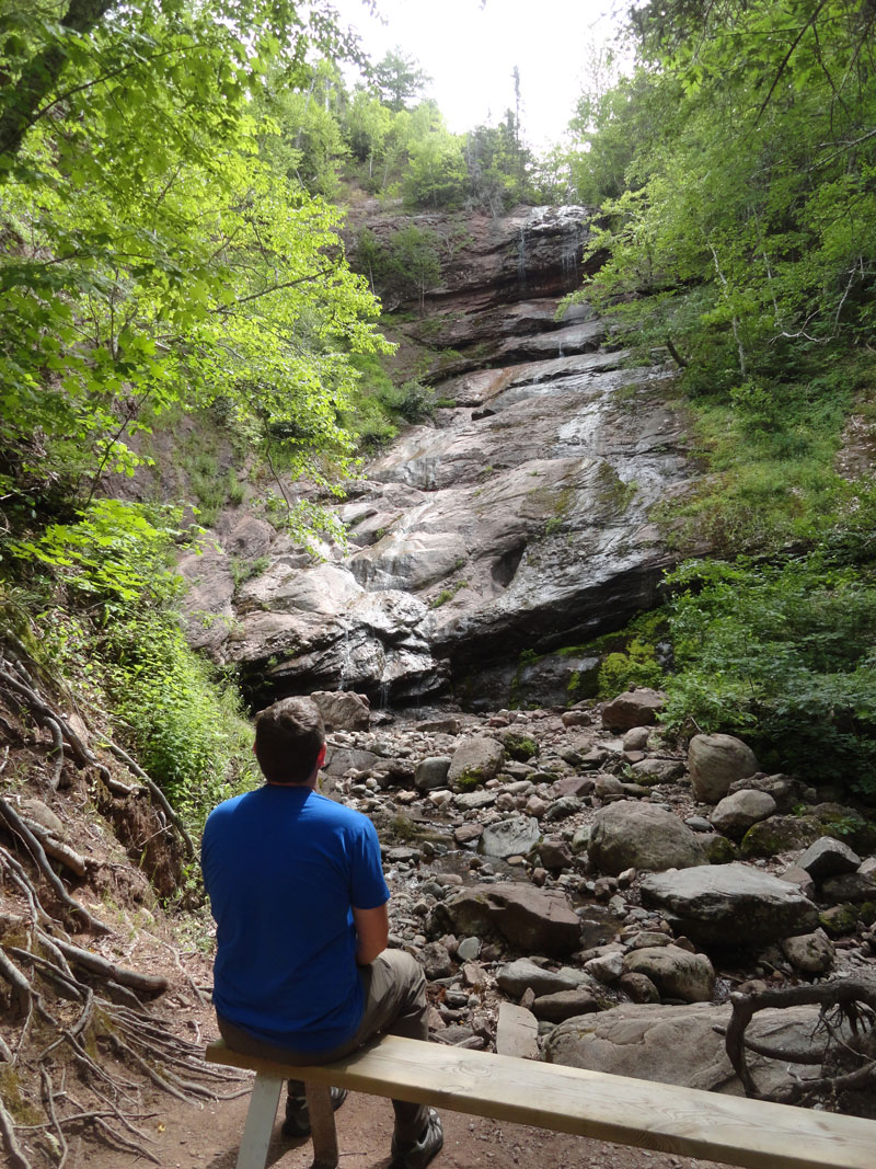 We decided to take a 2.2 km, unpaved side road to see Beulach Ban Falls (Gaelic for “white gorge”). This 20 meter waterfall occurs where water spills from the highlands down into the Aspy Valley, a strike-slip fault that makes a diagonal gash across the park. The parking area at the end of the road is the trailhead for the 9.6 km Aspy Trail, but the falls themselves are just a short walk away. Recent weather had been dry, so Beulach Ban wasn’t the rushing torrent seen in photos, it was just a trickle dripping down the rocks, but it was still pretty.