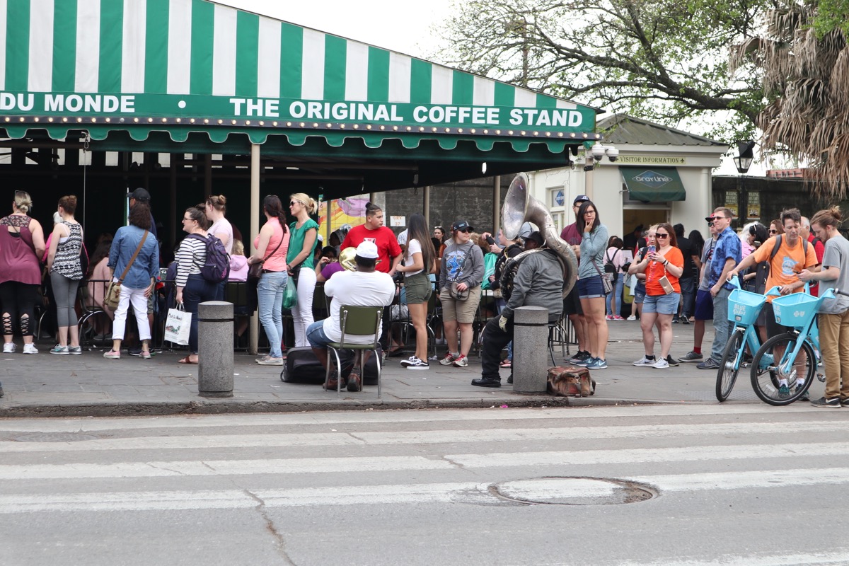 There’s always a long line at Cafe du Monde, but at least there’s always a sousaphone for entertainment.