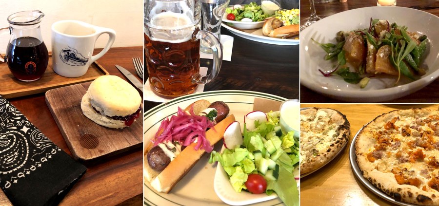 Breakfast, Lunch and two Dinners in Nashville. L to R: Barista Parlor, Von Elrod’s Sausage Shop, Margot Cafe, City House.