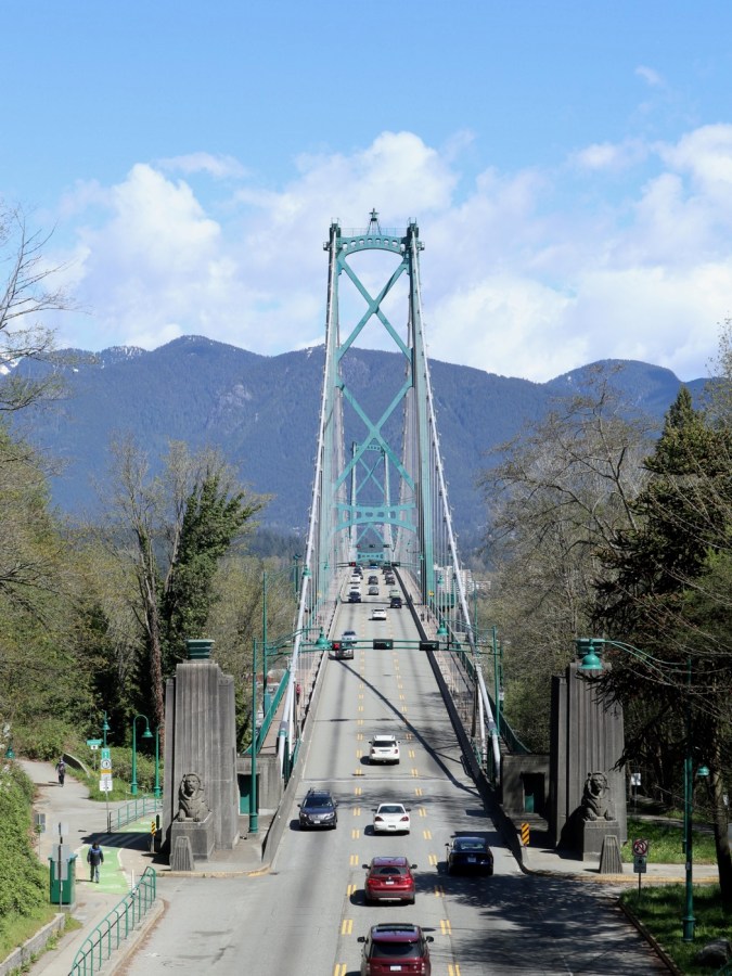 Lions Gate Bridge spans Vancouver Harbour and connects to the north shore.
