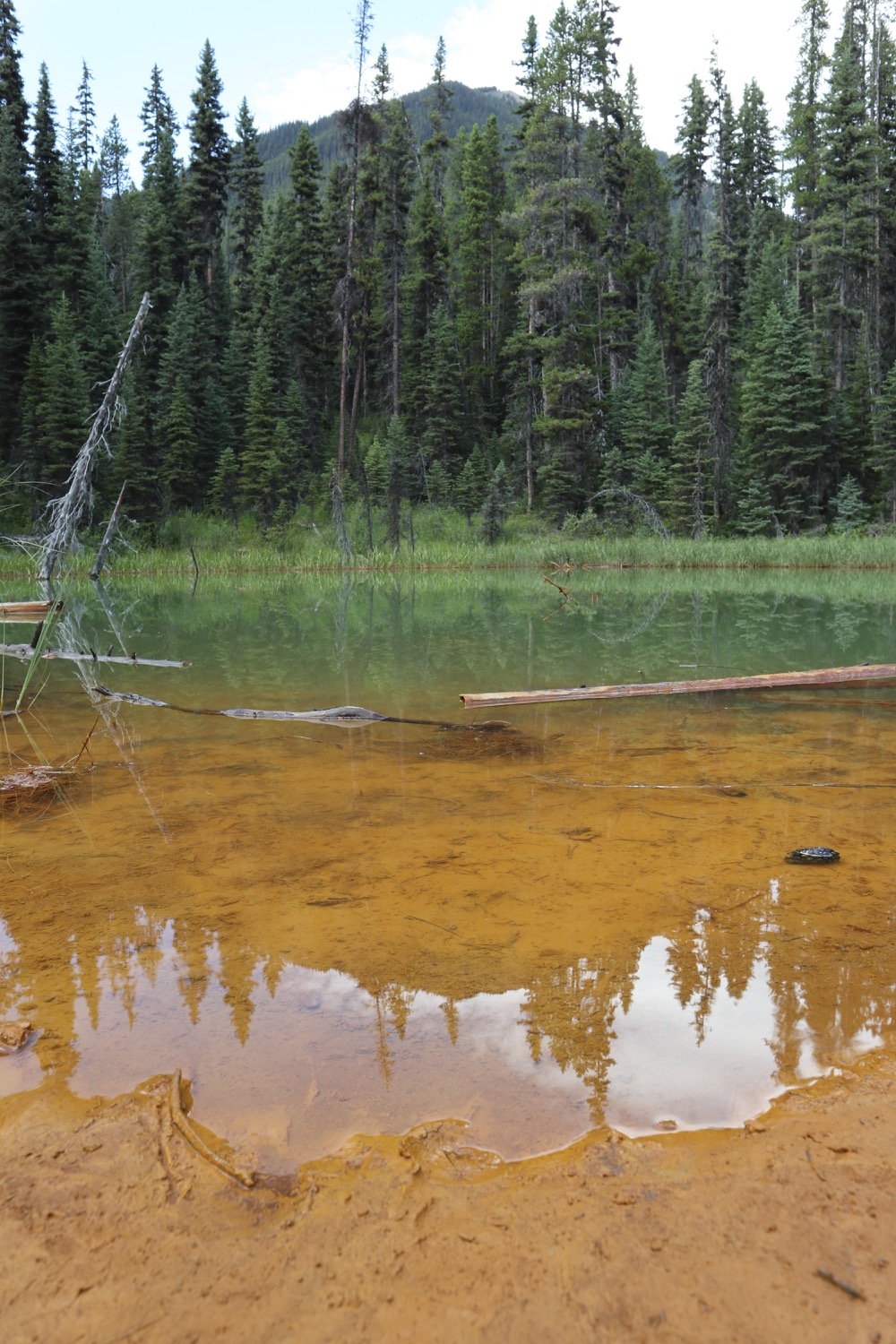 Paint Pots at Kootenay are pools of glacial water in beds of ochre tinted soil.