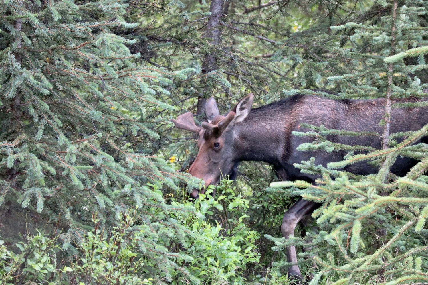 Mr. Moose was out and about while we drove to Maligne Lake for our boat cruise.