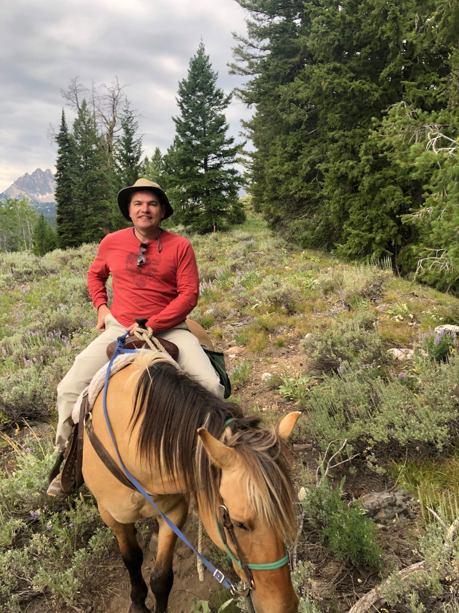 Nick and Johnny enjoying a morning ride at Mystic Saddle Ranch near Redfish Lake.