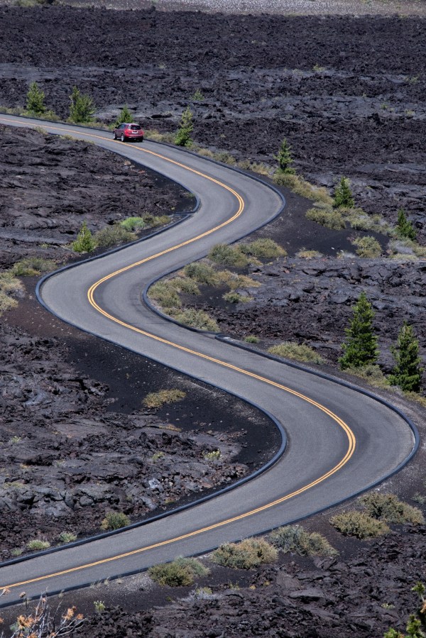Craters of the Moon Loop Road viewed from the Big Sink Overlook along Broken Top Loop Trail.