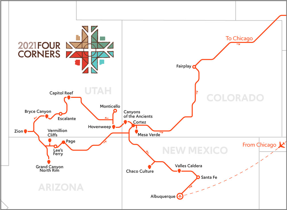 Following our urban New Mexico days, we’ll take our rented pickup truck into the wilderness by passing through Valles Caldera National Preserve on the way to a night of camping in Chaco Culture National Historical Park. This remote spot in the northwest of the state features a high concentration of ancient Ancestral Puebloan ruins. Next, we’ll head north into the Southwest corner of Colorado to visit more ruins at Canyons of the Ancients National Monument and then continuing the theme in Utah at Hovenweep National Monument. Our first night in Utah will be spent in a converted mill in Monticello called the Grist Mill Inn. We’ll be tantalizingly close to an area of Canyonlands we visited this spring, but instead we’ll head around the southern side of the Abajo Mountains, making stops at Bears Ears National Monument, Natural Bridges National Monument and various sites on the way to the Fruita Campground in Capitol Reef National Park. We visited Capitol Reef in 2015, so this is a quicker visit, but we’ll still hit up some things we didn’t have time to see last time.