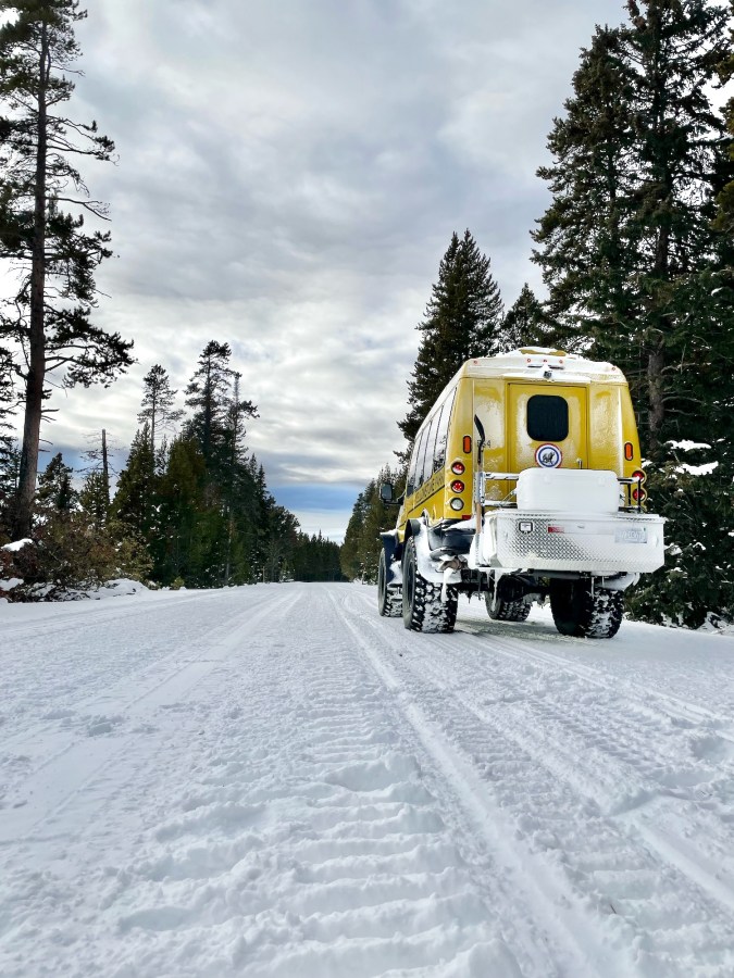 Our snow coach on the Grand Loop Road near Yellowstone Lake.