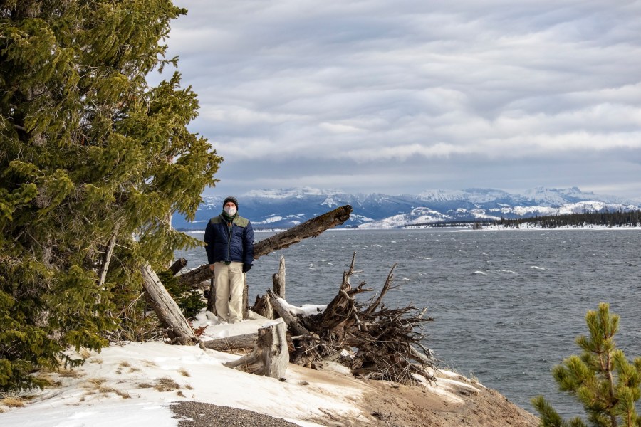 Frigid scene along the lake. Absaroka Mountains in the distance.