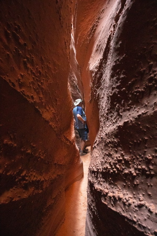 After passing through Peek-a-boo, a short hike across sandy flats leads to its neighbor, Spooky slot canyon.