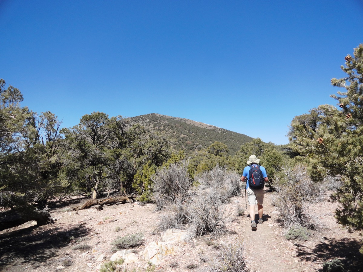 About halfway up the 4.2-mile trail. Wildrose Peak’s summit is the highest point visible.