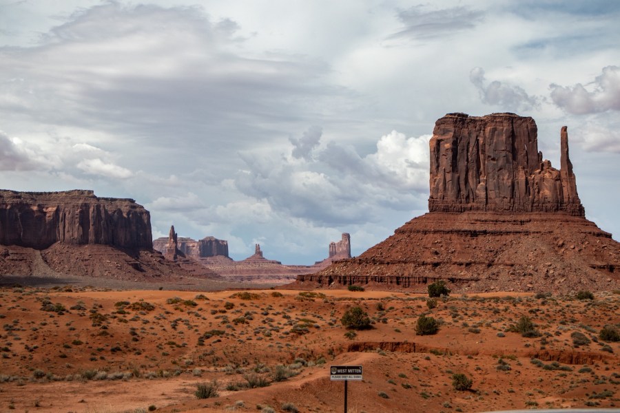 Also on the Navajo Nation, Monument Valley was almost empty of visitors, so we got a private tour on the back of a pickup truck. This is Merrick Butte at right and West Mitten Butte, among other formations.