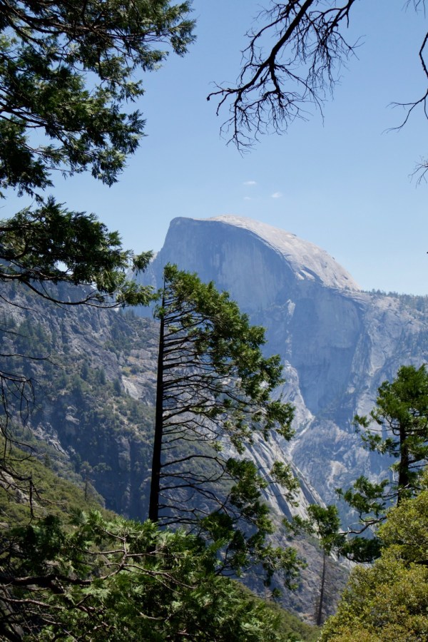 View of Half Dome while hiking up to the top of Yosemite Falls, the tallest waterfall in North America. This trail is a killer, switchbacks for days.